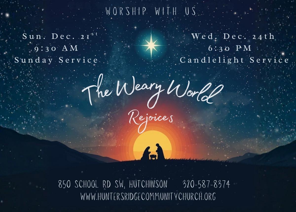 We hope you can worship with us Christmas Eve at 6:30pm Candlelight service.